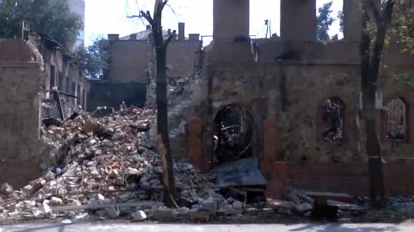 Một tòa nhà bị phá hủy tại thị trấn Pervomaysk, khu vực Lugansk