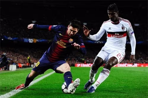 Messi có cú ra chân rất nhanh trong vòng vây của các cầu thủ Milan