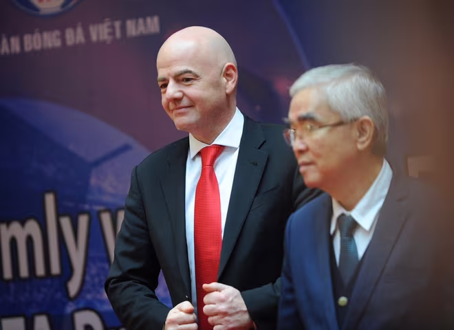 Chủ tịch FIFA và Chủ tịch VFF Lê Hùng Dũng (Ảnh: Vũ Vy)