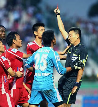 Trọng tài Võ Minh Trí trong trận CS.ĐT gặp V.HP chiều 13-5