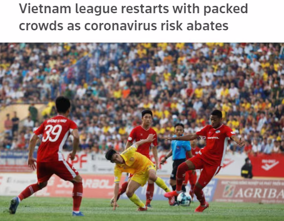 Trong bài biết có tựa (tạm dịch): "Giải VĐQG Việt Nam trở lại với các khán đài chật cứng", phóng viễn hãng thông tấn Reuters mô tả: "Hàng ngàn người hâm mộ đã đổ về các sân vận động ở Việt Nam khi quốc gia này nối lại hoạt động bóng đá đỉnh cao mà không cần biện pháp cách ly xã hội hoặc kiềm chế quy mô đám đông, nhờ thành công trong việc phòng chống sự lây lan của virus SARS-CoV-2".