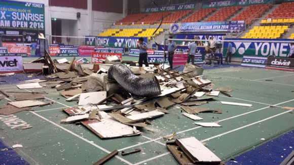 Liên quan đến sự cố sập trần NTĐ Phan Đình Phùng (TP.HCM) tối 2-9 trong lúc diễn ra giải Cầu lông quốc tế Việt Nam mở rộng 2014, nguyên nhân ban đầu được xác định là do xây từ năm 1985 đến nay đã quá cũ, xuống cấp, chứ không phải do thấm nước.