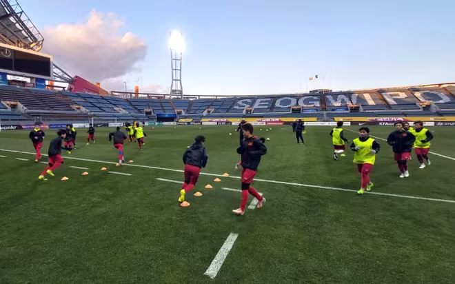 Tuyển nữ Việt Nam làm quen sân thi đấu Jeju World Cup