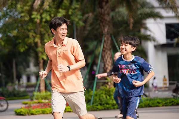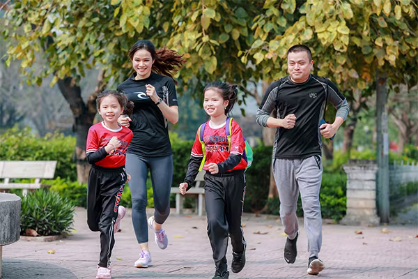 MC Thu Hương – Chuyển động 24h, đồng thời là phụ huynh Vinschool, tham gia Thử thách chạy 30 ngày cùng gia đình mình từ sáng sớm.