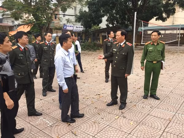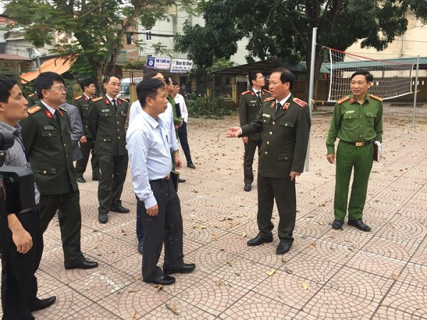 Thiếu tướng Đoàn Ngọc Hùng cùng lãnh đạo huyện Quốc Oai và các phòng, ban đến khu đất được bàn giao cho CAH