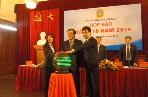 Cũng tại buổi thông tin trước các cơ quan báo chí về việc công bố Án lệ, đồng chí Nguyễn Hòa Bình – Bí thư Trung ương Đảng, Chánh án TAND Tối cao đã ấn nút chính thức khai trương Cổng thông tin điện tử về Án lệ.
