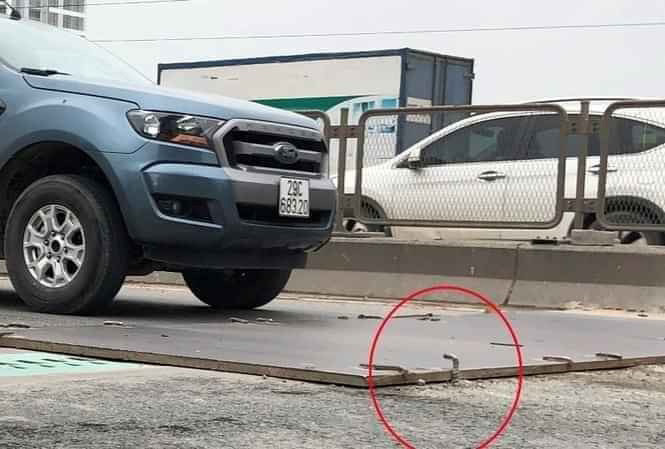 Trước đó, theo phản ánh của người tham gia giao thông trên đường vành đai 3 trên cao đoạn từ siêu thị Big C Thăng Long đến cầu Mai Dịch, tại một số vị trí công trường, các đơn vị thi công đã che đậy bằng tấm thép vẫn còn cả đinh thép nhô lên cao, gây nguy hiểm cho người và phương tiện tham gia giao thông.