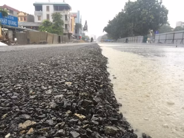 Ông Thắng thông tin thêm, do trời mưa, tầm nhìn hạn chế, đá dăm cấp phối có màu xanh sẫm nên trông giống nhựa đường, khiến nhiều người lầm tưởng. “Thực tế không đơn vị kỹ thuật nào lại đi trải nhựa đường trong mưa bão cả, làm thế thì nhà thầu và chủ đầu tư thiệt hại đầu tiên”, ông Thắng nói.
