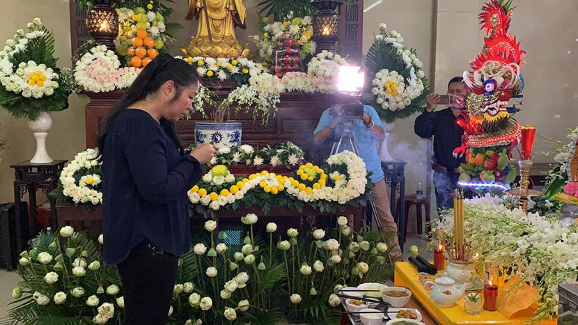 “Lúc xuống sân bay, tìm mãi vẫn thiếu 1 cái vali. Đúng lúc bên khu nhận hòm điện thoại nói mọi việc đã xong hết, chuẩn bị đưa thi hài lên xe về chùa, thì Leon Vũ phát hiện ra cái vali thứ 3. Có thể nói mọi chuyện cuối cùng cũng suôn sẻ.” – NSND Hồng Vân cho biết.
