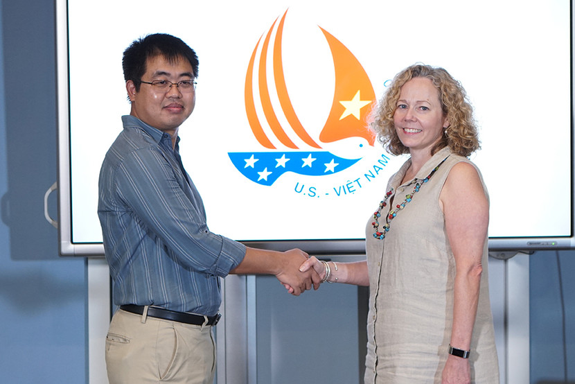 Ông Phạm Giang Linh - Tổng Giám đốc Hệ thống Giáo dục HOCMAI (bên trái) gặp gỡ bà Paula Kitendaugh - Giám đốc các Trung tâm Hoa Kỳ tại khu vực, Đại sứ quán Hoa Kỳ tại Hà Nội