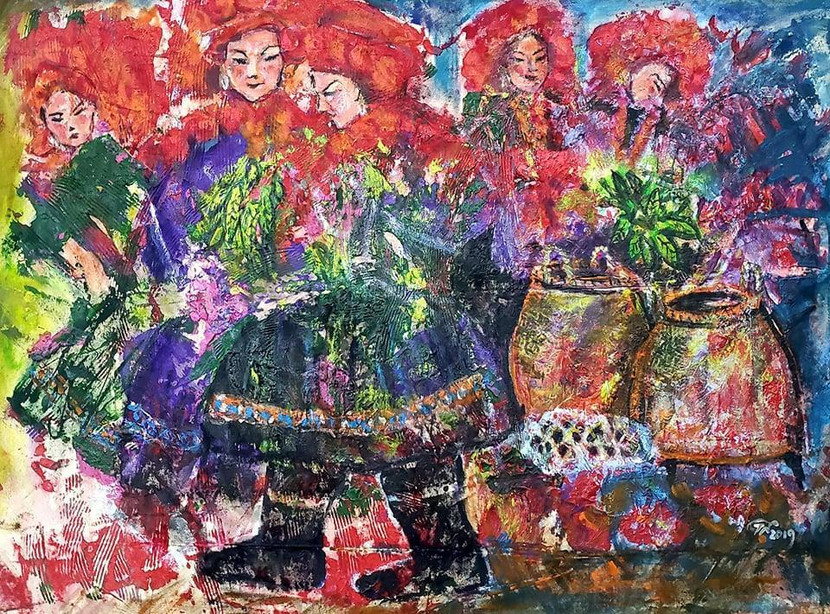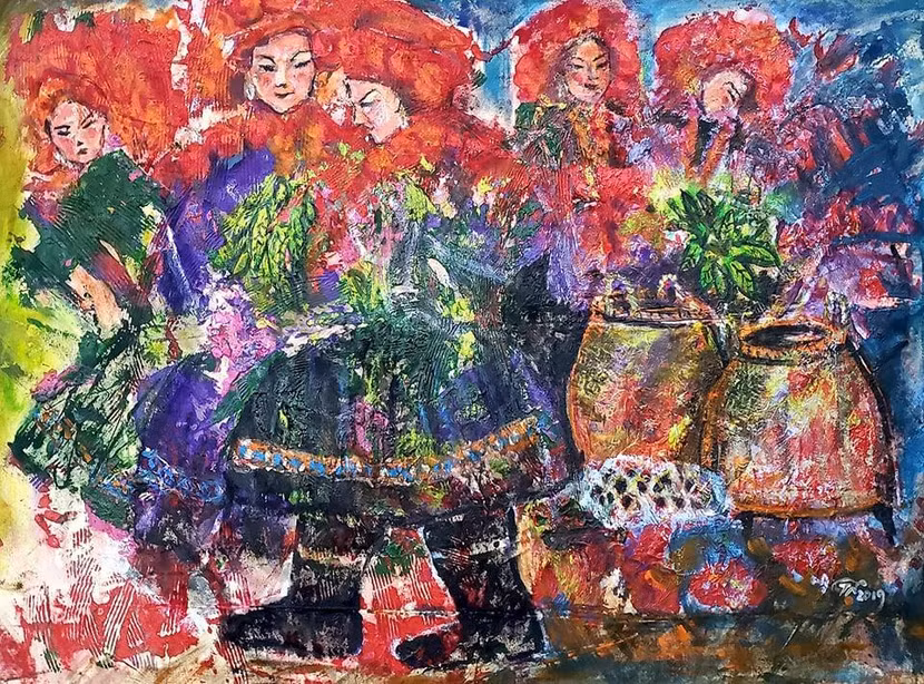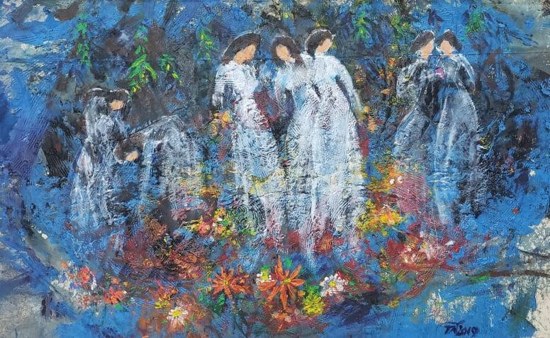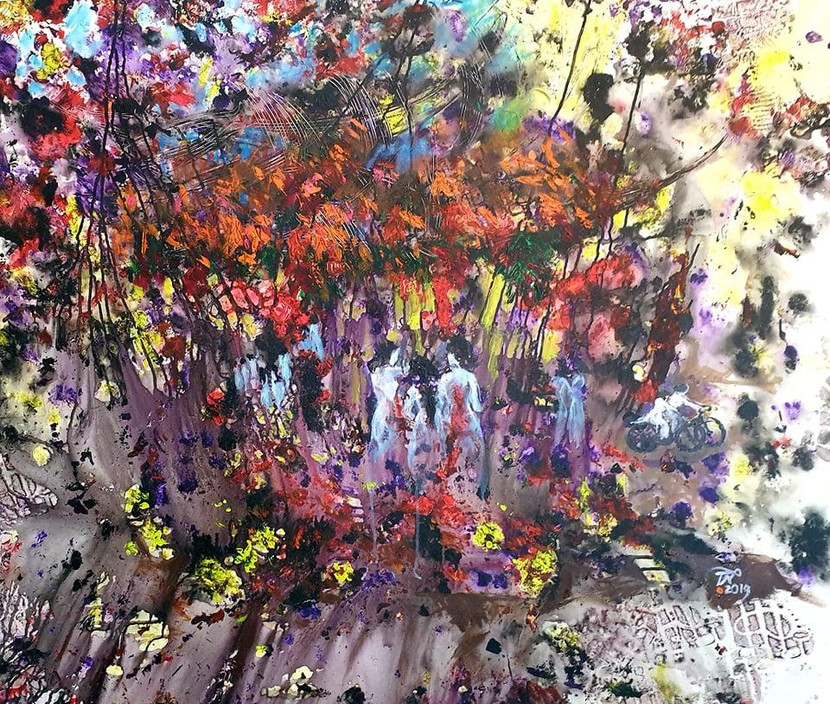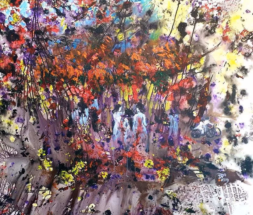 "Có thể không tưng bừng như những lần trước nhưng giữa lúc dịch bệnh mà tranh tôi vẫn bày giữa Hà Nội thì ghê chứ. "AQ một chút cho thêm năng lượng", nhà thơ Trần Nhương nói vui.