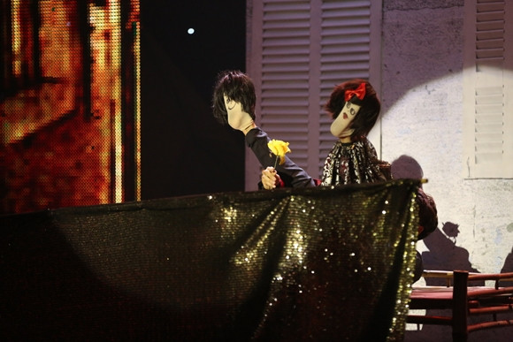 Ở cảnh người chồng nhớ lại kỷ niệm lúc hẹn hò với vợ, Tấn Phát đã dùng tay và chân của mình để làm thành 2 chú rối, khiến cho giám khảo Việt Hương và Vân Sơn rất bất ngờ. Vì đã từng học múa rối nước nên Tấn Phát thực hiện khá dễ dàng. Anh đã áp dụng cả hai loại hình nghệ thuật vào trong tiết mục của mình.