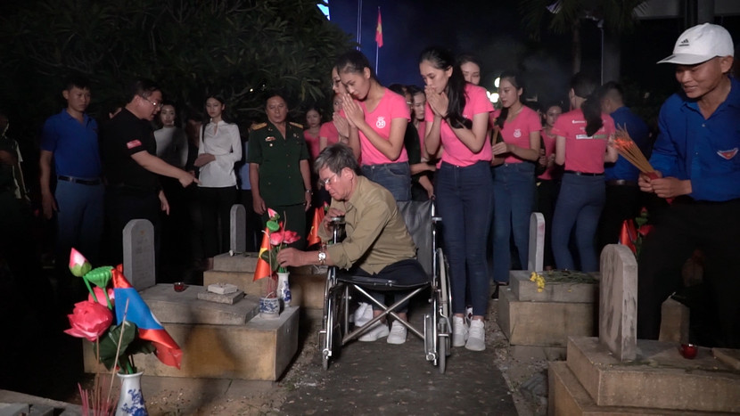 Cũng trong chuyến đi này, 9 cô gái đã tham gia dọn dẹp khuôn viên, cổng ra vào nghĩa trang, lau dọn các bia mộ... Đặc biệt, các thí sinh còn giao lưu và trao tặng quà cho các cựu Thanh niên xung phong tại buổi lễ tri ân được tổ chức trên địa bàn huyện.