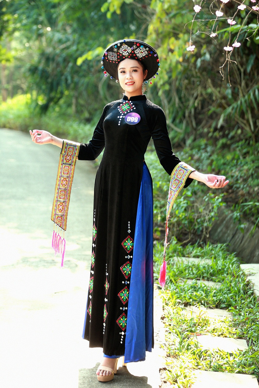 “Tôi đã dày công nghiên cứu, tìm hiểu kết hợp giữa tà áo dài Việt và vải thổ cẩm đặc trưng của xứ Mường không chỉ làm tôn lên chiếc áo dài truyền thống Việt Nam mà còn làm nổi bật nét văn hóa đặc sắc ở nơi đây.”, chủ nhân bộ sưu tập áo dài kể trên chia sẻ.