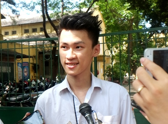 Phạm Văn Liêm, một trong những thí sinh ra khỏi phòng thi đầu tiên tại điểm thi trường THPT Việt Đức, Hà Nội cho biết khá hài lòng với đề thi Ngữ văn