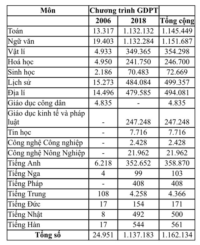 Số thí sinh học lớp 12 thi theo Chương trình giáo dục phổ thông 2018 là 1.122.507 (chiếm 96,33%).