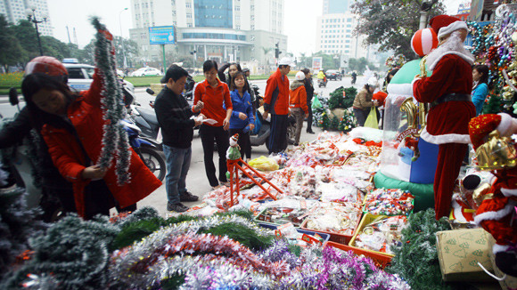 Ghi nhận của PV ANTĐ tại các cửa hàng bán quà tặng, đồ chơi Noel trên phố Lương Văn Can cho thấy, khách mua hàng rất thưa thớt. Đã qua giờ nghỉ trưa khách hàng mua sắm đông đúc hơn nhưng cửa hàng lớn tại 27, 35 Lương Văn Can chỉ có 4-5 khách mua lẻ và khách tham khảo giá, vắng hẳn những khách hàng mua buôn lớn. Theo nhân viên cửa hàng bán đồ trang trí Noel, thời điểm này những năm trước, hàng bán rất chạy, khách mua lẻ vài quả bóng, hay con thú, ngôi sao... rất đông đúc; các nhà hàng, khách sạn, cửa hàng quần áo thời trang, ngân hàng cũng mua cây thông, vòng nguyệt quế, đồ trang trí từ trước Noel nửa tháng nhưng năm nay thị trường kém sôi động.