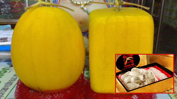 Cách đây vài năm, sự xuất hiện của quả dưa hấu hình hộp vuông đã làm khơi dậy không ít trí tò mò của nhiều người. Rồi đến quả dưa hình thỏi vàng. Tất cả là nhờ tài của ông Trần Thanh Liêm ở Cần Thơ. 2 sản phẩm của ông đã trở thành lựa chọn với rất nhiều người tiêu dùng trong dịp Tết. Quả dưa hấu có hình thỏi vàng được bán trên thị trường với giá 7-8 triệu/cặp là quá đắt so với người tiêu dùng nhưng lại là lựa chọn cho những người đi biếu quà Tết. Tết Nhâm Thìn năm nay, có rất nhiều đối tác từ Hà Nội, TP.HCM đã đặt hàng ông Trần Thanh Liêm quả dưa hấu hình thỏi vàng được tạo thêm chữ “Phúc” trên vỏ dưa. Dự kiến, giá dưa hấu có hình thỏi vàng dịp Tết năm nay sẽ không dưới mức giá 5 triệu đồng/cặp và 2 triệu đồng/cặp dưa hấu hình vuông. Ghé qua Hậu Giang, nơi mà mỗi dịp Tết về, bưởi Năm Roi nổi tiếng sẽ được tạo dáng giống như bình hồ lô. Chữ “Phúc” sẽ được làm nổi tự nhiên trên vỏ bưởi. Tết Nhâm Thìn này giá một quả bưởi Năm Roi… hồ lô sẽ có giá 700.000 đồng/quả (1,5kg trở lên) và 500.000 đồng/quả (1-1,4kg).
