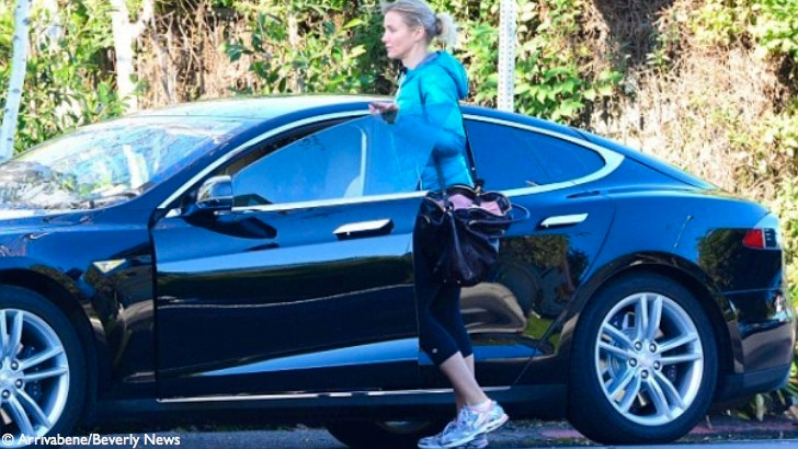 Cameron Diaz được các paparazzi “chộp” được khi đang bước ra khỏi phòng tập thể hình, tiến về phía chiếc xe Tesla Model S. Tesla Model S là một mẫu xe hơi hạng sang và hoàn toàn không thải ra khí độc hại nhờ sử dụng động cơ điện, vì thế đây là một lựa chọn tuyệt vời cho các ngôi sao khi muốn truyền tải thông điệp bảo vệ môi trường.