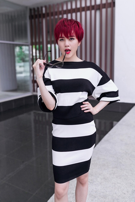 Đầm dệt kim sọc ngang đen trắng bảng lớn trông trẻ trung, năng động, không bao giờ đề mốt và rất thích hợp với tiết trời cuối đông