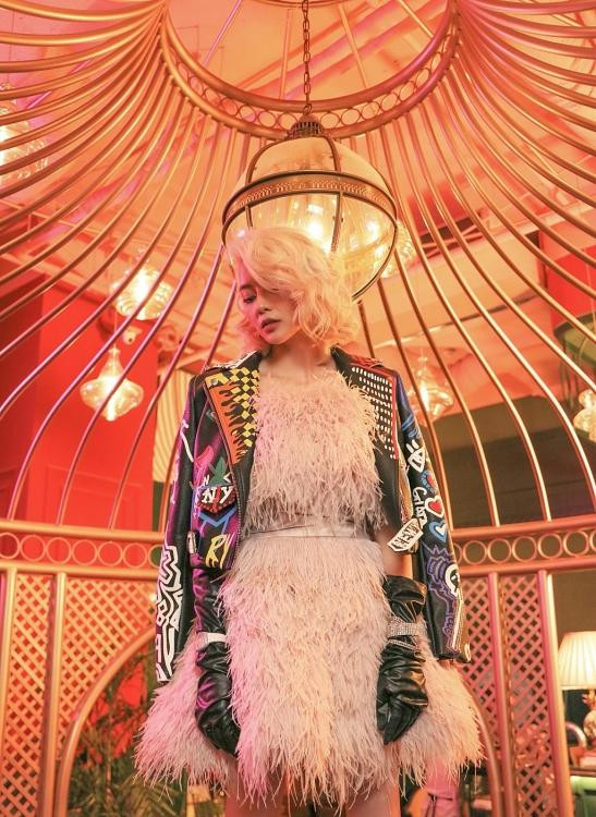 Trái ngược với Thiều Bảo Trang ngọt ngào, mơ mộng trong "Lalala yêu", nhân vật nữ trong "Oxytocin" xuất hiênn trên sàn diễn, rũ bỏ vẻ ngoài nàng thơ và nhập tiệc với hình ảnh năng động cuốn hút. Trang phục cũng được cô chăm chút hoàn hảo và thể hiện độ chịu chơi rất mạnh tay khi nàng “yêu nữ hàng hiệu” khoác lên mình hàng loạt trang phục đến từ các nhà mốt đình đám với thiết kế cá tính.