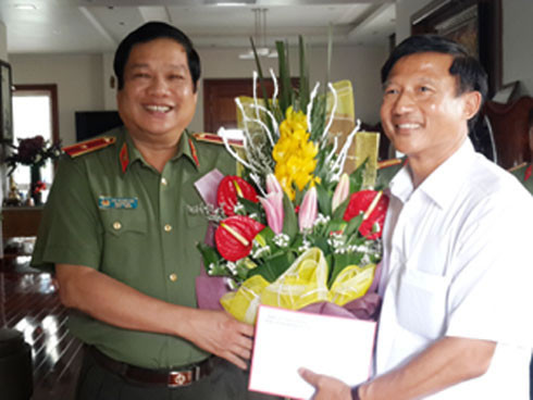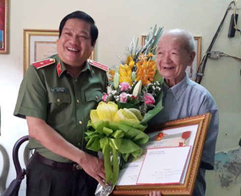Thiếu tướng Lưu Quang Hợi - Phó Giám đốc CATP Hà Nội thăm, tặng quà Thiếu tướng Trần Long Xuyên- nguyên Phó Giám đốc CATP Hà Nội
