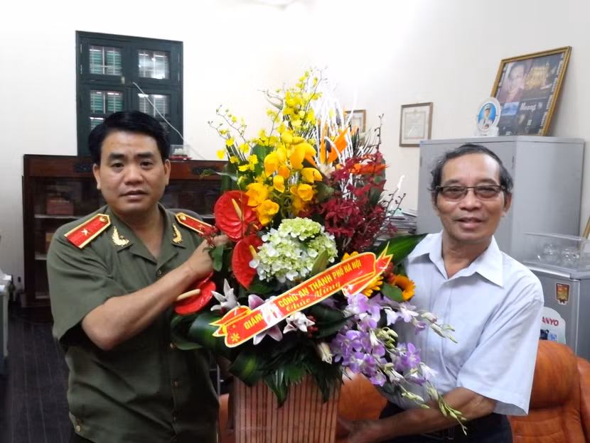 Thiếu tướng, Giám đốc CATP Hà Nội Nguyễn Đức Chung chúc mừng nhà thơ Bằng Việt