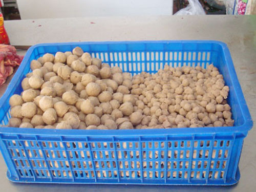 Bò viên được sản xuất từ thịt bò vụn, mỡ heo, mỡ cá