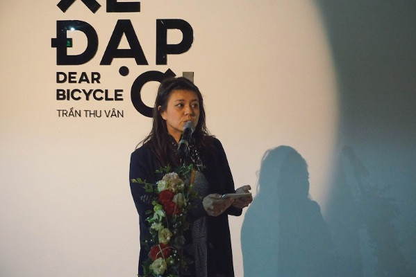 Trần Thu Vân là một nghệ sĩ ý niệm người Pháp gốc Việt, sinh sống và làm việc tại Paris. “Xe đạp ơi” là triển lãm đầu tiên mà chị thực hiện tại VCCA. Chính không gian này cũng một phần cảm hứng của tác phẩm.
