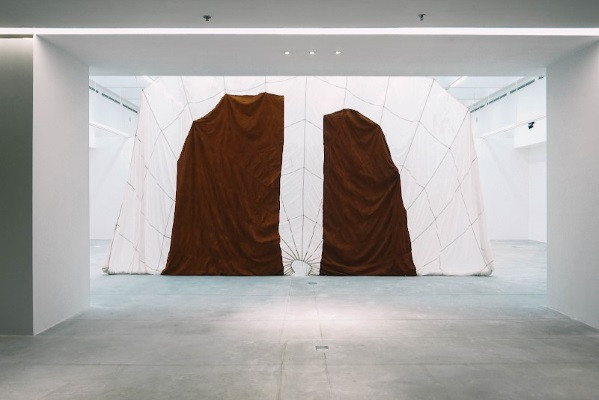 Phía sau sau bức màn “buồm - dù” là bức vẽ lớn trên tường với tông màu xám chủ đạo được tạo nên từ việc trét 6 lớp màu, lớp nọ phủ định lớp kia - 6 màu của 6 loại chất diệt cỏ mà Mỹ sử dụng trong chiến tranh Việt Nam (trắng, hồng, xanh lá, xanh lam, tím, và màu Da Cam - màu được biết đến nhiều nhất về đặc tính hủy diệt của nó).