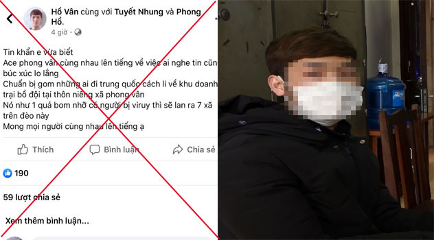 Trước đó, chiều 6-2, Công an huyện Lục Ngạn phát hiện một tài khoản facebook cá nhân đăng thông tin về việc khu doanh trại bộ đội ở xã Phong Vân sẽ được chọn là nơi cách ly người Trung Quốc về nước do dịch Corona: “...nó như 1 quả bom nhỡ có người bị virus thì sẽ lan ra 7 xã trên đèo. Mong mọi người cùng nhau lên tiếng ạ”.