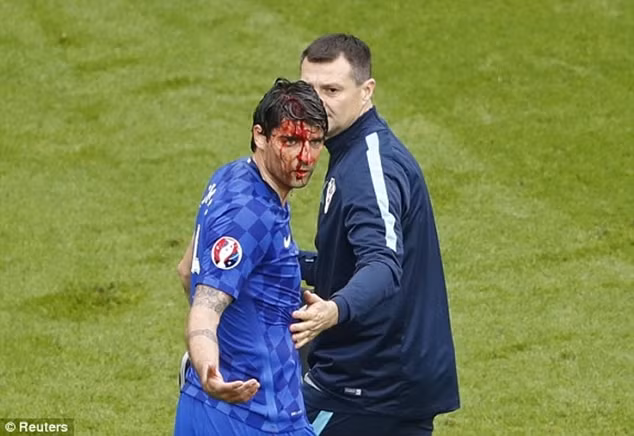 Corluka của Croatia bị cầu thủ của Thổ Nhĩ Kỳ "đánh" chảy máu đầu