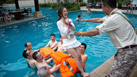 Từ trên bờ, một phụ nữ trẻ trong bộ bikini bắt mắt hít một hơi thật sâu, từ từ ngả lưng và rơi vào vòng tay một nhóm đàn ông trung niên đang đón đợi dưới bể bơi. Một hàng dài các cô gái trong trang phục áo tắm thiếu vải tương tự đứng trên bờ chờ tới lượt. Trò chơi này là tiết mục mở màn hâm nóng không khí cho một buổi mai mối cao cấp dành cho các triệu phú trên hòn đảo nhiệt đới Hải Nam, miền Nam Trung Quốc. Hàng chục cô gái đã được tuyển lựa gắt gao trên toàn Trung Quốc suốt 6 tháng, còn 10 người đàn ông mỗi người phải chịu chi 100.000 nhân dân tệ (hơn 16.000 USD) để tham gia sự kiện này.