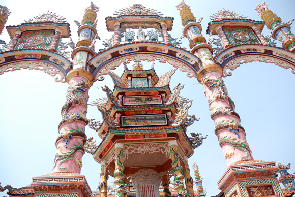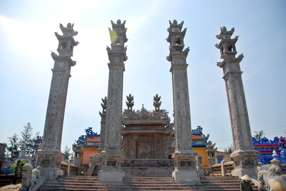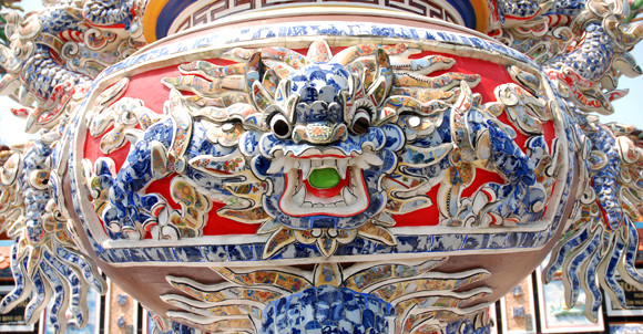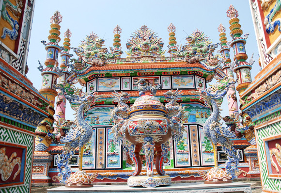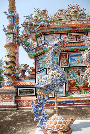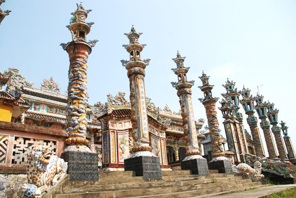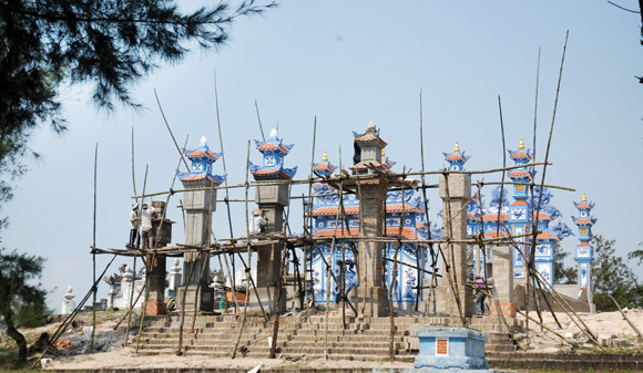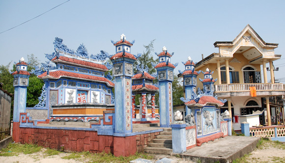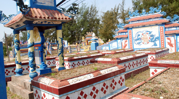 Bên cạnh quy mô thì sự cầu kỳ trong việc thể hiện các chi tiết cho thấy mức độ "hoành tráng" của mỗi ngôi mộ. Ở đây, các ngôi mộ được ốp sành sứ theo kiến trúc chùa chiền Huế. Sự tinh xảo, tỉ mỉ trong công đoạn ốp sành sứ thể hiện "đẳng cấp" mỗi khu mộ.