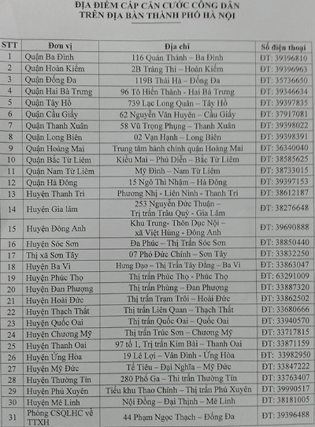 1. Các thủ tục hành chính quy định về vấp Căn cước công dân được đăng ký trên Cổng thông tin điện tử của CATP Hà Nội và niêm yết công khai tại trụ sở tiếp công dân của Phòng Cảnh sát QLHC về TTXH và công an các quận, huyện, thị xã.