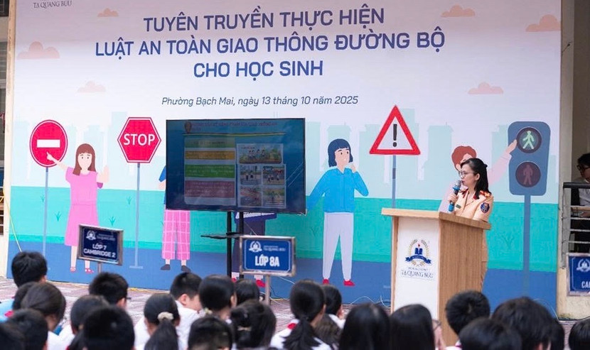 Thực hiện Kế hoạch số 320 ngày 10/9/2025 của Công an TP Hà Nội về “Cao điểm tuyên truyền, kiểm tra, xử lý vi phạm TTATGT đối với học sinh và phụ huynh”, Công an phường Bạch Mai phối hợp với các đơn vị nghiệp vụ Công an Thành phố Hà Nội đã tổ chức buổi tuyên truyền, giáo dục pháp luật về Luật Trật tự, an toàn giao thông đường bộ cho hơn 800 học sinh Trường Trung học cơ sở, Trung học phổ thông Tạ Quang Bửu. Chương trình nhận được sự hưởng ứng tích cực của giáo viên, phụ huynh và học sinh, thể hiện sự quan tâm sâu sắc tới công tác đảm bảo an toàn ngay từ lứa tuổi học đường.