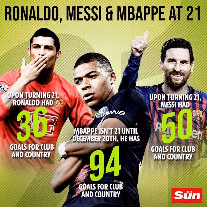 Đó là chưa kể, Mbappe đã bước lên đỉnh cao thế giới với chức vô địch World Cup 2018 với Pháp, trong khi đó chỉ là giấc mơ xa vời với cả Messi lẫn Ronaldo.