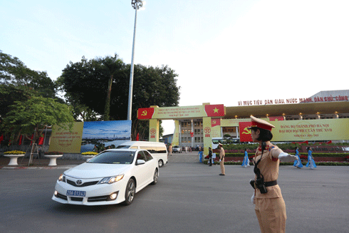 | Lực lượng CSGT, CATP Hà Nội phân luồng, bảo đảm ATGT trong thời gian diễn ra Đại hội Đại biểu lần thứ XVII Đảng bộ TP Hà Nội Ảnh: LAM THANH |
