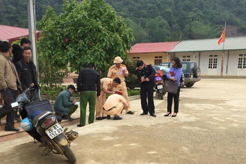 Lực lượng Công an khám nghiệm hiện trường vụ tai nạn.
