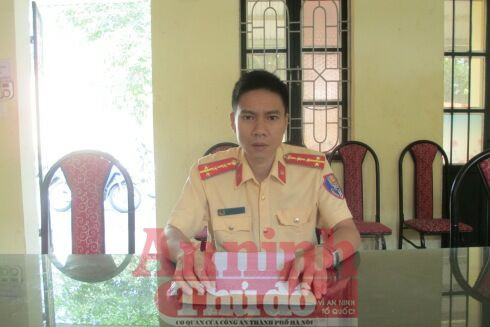 Đại úy Trần Triệu Tuấn, Đội CSGT-TT-CĐ, Công an quận Đống Đa, cung cấp thông tin cho PV Báo ANTĐ