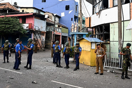 Lực lượng an ninh Sri Lanka bên ngoài một địa điểm bị tấn công hôm 21-4