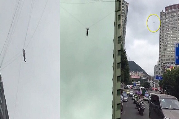 Vị trí ông ta mắc kẹt ở độ cao khoảng tầng 19 so với mặt đường và rất gần với một loạt các đường dây điện cao thế, nhưng may mắn ông ta đã không chạm vào những sợi dây điện nên không bị điện giật.