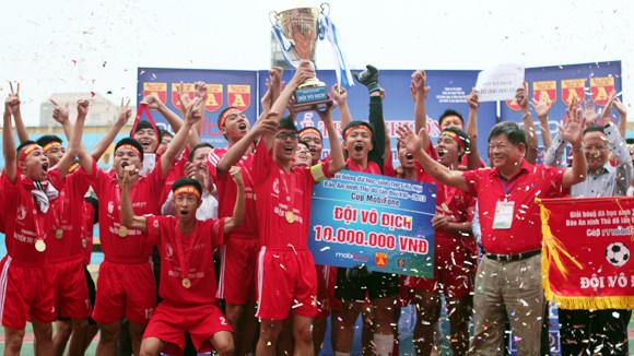 Sân Hàng Đẫy chiều qua 10-11 tưng bừng đúng nghĩa của một ngày hội. Những băng rôn khẩu hiệu đầy màu sắc, lớp lớp cờ hoa sặc sỡ phủ kín cả khán đài A cùng những âm thanh huyên náo, sôi động mà gần 5.000 CĐV tạo ra khiến ai có mặt chứng kiến trận chung kết cũng cảm thấy phấn chấn vô cùng. Một tháng thi đấu đã trôi qua thật nhanh, để rồi THPT Nguyễn Thị Minh Khai và THPT Phùng Khắc Khoan là hai đại diện ưu tú bước vào trận đấu quan trọng nhất mùa giải. Sau lời khai mạc trận chung kết ngắn gọn nhưng sâu sắc của Đại tá Đào Lê Bình – Tổng Biên tập Báo An ninh Thủ đô – Trưởng BTC giải, trong đó nhấn mạnh sự tri ân với Sở GD-ĐT, Sở VH-TT&DL, LĐBĐ Hà Nội và đặc biệt là nhà tài trợ Mobifone, nhà tài trợ Động lực đã góp công sức to lớn giúp Báo An ninh Thủ đô tổ chức một mùa giải trọn vẹn và thành công, trận đấu giữa THPT Nguyễn Thị Minh Khai và THPT Phùng Khắc Khoan đã diễn ra trong sự cổ vũ rất nhiệt tình của các CĐV.