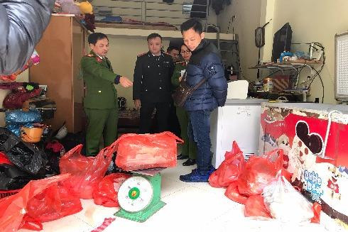 Sáng 10-1, Đội 4 - Phòng Cảnh sát ĐTTP về môi trường, CATP Hà Nội phối hợp cùng thanh tra Sở Nông nghiệp và phát triển nông thôn kiểm tra đột xuất kho tập kết thực phẩm có địa chỉ tại khu biệt thự Nam Thắng, tổ dân phố số 3, phường Trung Văn, quận Nam Từ Liêm.