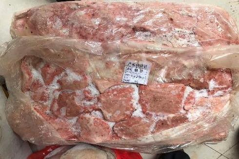 Tại đây, lực lượng chức năng phát hiện cơ sở này đang tập kết hơn 200kg nầm lợn không rõ nguồn gốc chuẩn bị đi tiêu thụ. Số nầm này được đóng gói trong các túi nilon, trên bao bì bên ngoài dán nhãn 25kg/bao, kèm theo là chữ Trung Quốc.