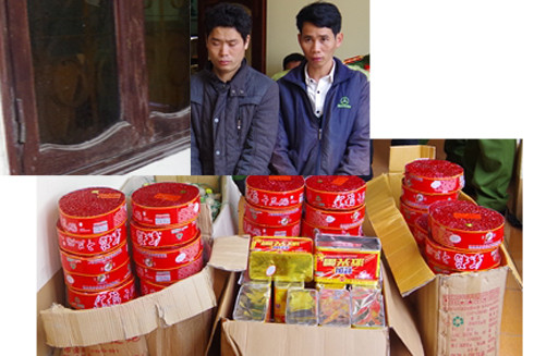 Kiểm tra tại chỗ, các lái xe khai nhận tên: Vùi Seo Pao (27 tuổi), trú tại xã Minh Tân và Hoàng Văn Yên (32 tuổi), trú tại xã Trung Thành, huyện Vị Xuyên cùng số tang vật pháo có tổng trọng lượng 76kg.