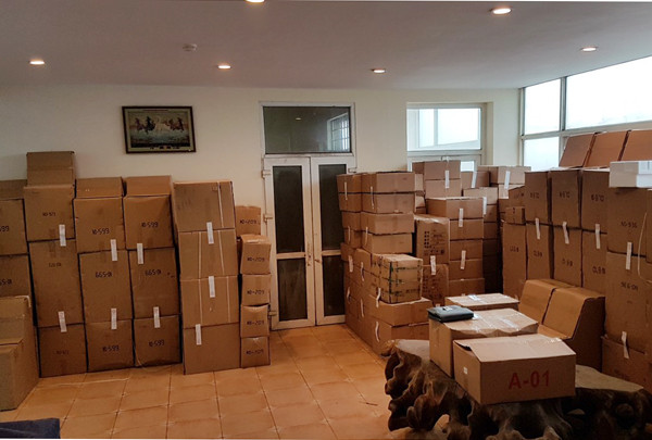 Lực lượng chức năng kiểm đếm số lượng hàng hóa