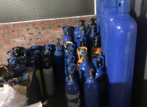 Hàng chục bình chứa khí cười các loại trong nhà kho bị Đội Cảnh sát ĐTTP kinh tế và chức vụ CAQ Cầu Giấy phát hiện thu giữ