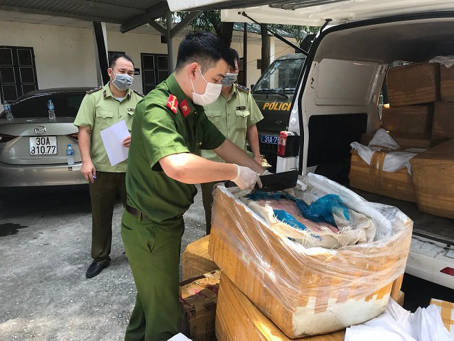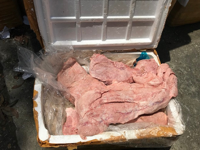 Bước đầu, tài xế điều khiển phương tiện là Nguyễn Văn Khải (SN 1987, trú tại xã Trung Châu, huyện Đan Phượng, Hà Nội) trình bày, toàn bộ số hàng hóa trên xe là nầm lợn đông lạnh. Tài xế này không xuất trình được hóa đơn chứng từ, chứng minh nguồn gốc xuất xứ, giấy chứng nhận vệ sinh an toàn thực phẩm của lô hàng.