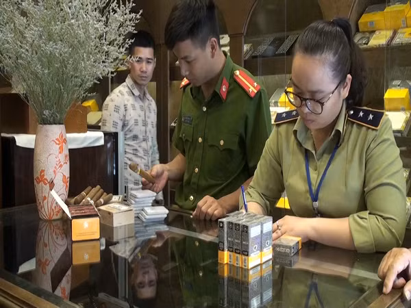 Lực lượng QLTT Hà Nội kiểm tra các cơ sở kinh doanh xì gà trên địa bàn thành phố
